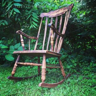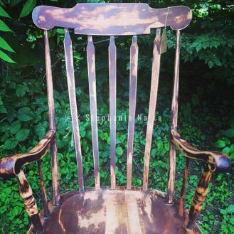 First I decided to sand it down to get it ready for some paint. I used a low grit sandpaper because some of the old finish was chipping off. I didn’t want there to be any chance of the new paint chipping off during its new life. I used and orbital palm sander on the seat and all flat parts of the chair. I then hand sanded the rungs, making sure to get into every crease to remove all the old chipping finish.