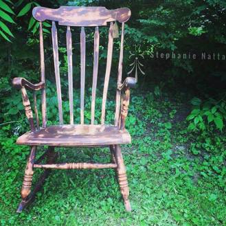 Now it was time to fix the split wood on the seat. I used wood glue and flowed it into the slot of the cracked wood. I then used a clamp to hold the two pieces together while I cleaned the extra glue from the seat. I let it sit over night to dry. The next day I used a paint brush and applied a few coats of minwax Polycrylic to seal and protect the surface of the chair from everyday wear and tare.
